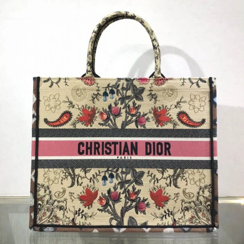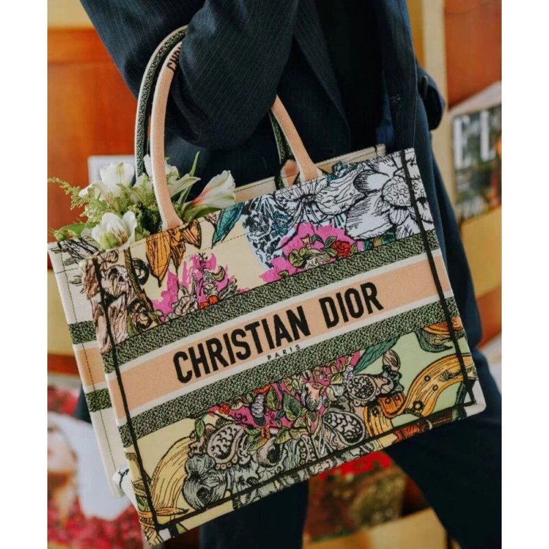 ‘Christia Christian Dior Book Tote Broderie Flowers Multicolore